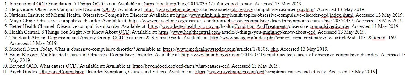 Obsessive Compulsive Disorder – OCD